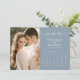 Calendário de Foto Elegante Moderno Dusty Blue Wedding Salve a Data. Personalize facilmente substituindo cada informação. Carregue um retrato/foto vertical. Mova o círculo clicando no link Personalizar ainda mais. Verifique a visualização antes de adicionar ao carrinho. (Exemplo de foto de Jonathan Borba do Pexels)