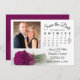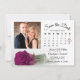 Este belo casamento Salve o cartão de data apresenta um design clássico de eterno com solteiro longo de ameixa magenta ou rosa de cor roxa. Há um calendário personalizável onde você pode colocar um coração em volta da data do casamento com espaço para sua foto, o nome do casal e a localização do casamento. Elegante, romântico e na moda, este cartão é uma maneira fácil e prática de deixar seus amigos e familiares saberem salvar a data para seu dia especial.