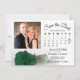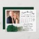 Este belo casamento Salve o cartão de data apresenta um design clássico de eterno com um solteiro de longa estante de rosa verde esmeralda. Há um calendário personalizável onde você pode colocar um coração em volta da data do casamento com espaço para sua foto, o nome do casal e a localização do casamento. Elegante, romântico e na moda, este cartão é uma maneira fácil e prática de deixar seus amigos e familiares saberem salvar a data para seu dia especial.
