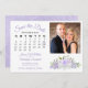 Este belo casamento Salve o cartão de data apresenta um design bólus rústico com um aglomerado de rosas de aquarelas pintadas à mão e flores em tons de lavanda pálida ou roxo lilás. O lado esquerdo do cartão é um calendário que você pode personalizar com um coração à volta da data do seu casamento. Há espaço para sua foto, o nome do casal e a localização do casamento. Elegante, na moda e chic, este cartão é uma forma excelente de deixar seus amigos e família saberem salvar a data do seu dia especial.