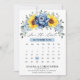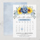 Cartão de "save the date" de calendário de casamento de verão elegante e moderno apresenta um buquê de girassóis, hidrangeálias e peônias em tons de amarelo, ardósia e azul poeirento com folhas botânicas verdes exuberantes e eucalipto. Encontre mais designs e variações correspondentes na minha loja "blissweddingpaperie". E sinta-se à vontade para entrar em contato comigo para personalização adicional ou itens correspondentes.