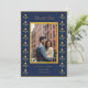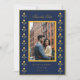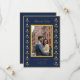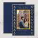 Cartão de Save the Date Amarelo e Azul-Marinho Fofo com bordadura de malmequer em aguarela com foto do casal.