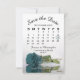 Estas belas Cartões salve a data apresentam uma bela fotografia de um solteiro de palha, turquesa ou rosa de cor aqua escura, que se apresenta em água com ondas e ondulações. O cartão inclui um calendário com a data do seu casamento em círculo de coração. Belo design romântico.