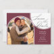 Casamento de Burgundy salve o cartão de data com uma foto de casamento arquitetada moderna na frente, uma caligrafia elegante e uma foto do tamanho do cheio no verso. Chic design e modelo pronto para seus nomes e data de casamento. O modelo de foto exibirá automaticamente sua foto na forma de arco. Convites de coordenação, papelaria e decoração de dia de evento podem ser encontrados na minha coleção de Cores de Casamento. Se você quiser cores diferentes ou modelos adicionais para produtos correspondentes, por favor, envie-me uma mensagem para adicioná-los para você.