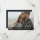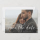 Anuncie sua data de casamento em estilo inesquecível com estes cartões salve a data elegantes, com uma foto horizontal ou orientada para a paisagem de cheio com "salve a data" sobreposta em letras brancas de caligrafia ao longo da parte inferior. Seus nomes, data do casamento e local do casamento aparecem em letras modernas. Personalize as costas com detalhes adicionais, como o seu site de casamento.