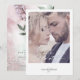 Uma fonte manuscrita e personalizada combinada com uma sans serif moderna é usada nesta coleção de papelaria floral para definir um tom caloroso e íntimo para o seu casamento. O cartão Save the Date mostrado aqui apresenta sua própria imagem e delicado acento de coração na frente, enquanto a parte traseira tem flores exuberantes e folhagens em tons que variam de mauve suave a verde-sage contra um fundo de borrões de tinta aquarela sonhadora. Pesquise ID771 para ver outras peças e opções de cores para este conjunto.