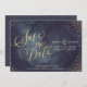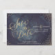 Glamor gold lettering calliografia design e pontos dourados confetti em fundo de cor d'água escuro no céu escuro, brilho falso efeito metálico de brilho dourado, moderno, chic, elegante e elegante, perfeito para casamento vintage ou casamento no inverno à noite. Personalize o seu próprio cartão de data para o seu convite de casamento. Veja todas as peças correspondentes nesta coleção de caligrafia de glitter de ouro da noite de Glam abaixo.