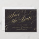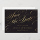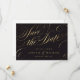 Roteiro romântico de caligrafia em cor falsa de ouro em fundo preto de carvão carvado editável a cores, casamento elegante e sofisticado, salva os cartões de data para casamento vintage, primavera ou casamento no inverno.