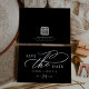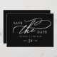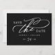 Este código de QR preto negro de caligrafia romântica salvar o cartão de data é perfeito para um casamento simples. O clássico design moderno apresenta espirais ricos e turbilhões brancos com magnífica e elegante tipografia à mão.
