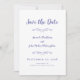 Cartões salve a data elegantes e delicados em lindos azuis e brancos são clássicos, formais e eternos. A design romântica sem bordas permite que você escolha facilmente a forma de papel para o seu anúncio de noivado. Duas decorativas florescem cada uma contendo um solteiro cardíaco delicadamente com o nome da noiva e do noivo. Para obter resultados ideais, pule as linhas e capitalize como na amostra. Envie perguntas ou solicitações personalizadas para invitationsuites@gmail.com. A suíte de cheios está chegando em breve nesta cor!