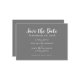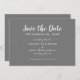 Cartões salve a data elegantes e delicados em cinzas clássicas apresentam letras brancas nítidas e script. O design romântico sem fronteiras permite que você escolha facilmente a forma de papel para o lançamento do seu noivado. Duas decorativas florescem cada uma contendo um solteiro cardíaco delicadamente com o nome da noiva e do noivo. Para obter resultados ideais, pule as linhas e capitalize como na amostra. Envie perguntas ou solicitações personalizadas para invitationsuites@gmail.com