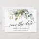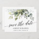 Manuscrito de Caligrafia Moderna Manuscrito Elegante Aquarela Verde Botânica Anúncio de Noivado de Casamento Salvar O Cartão de Data inclui folhas de eucalipto, folhagem botânica verde, folhas azuis empoeiradas e outro belo verde botânico.