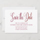 Elegante e eterno vermelho e branco. Salvar a Data é escrito em belo texto de script. Seus nomes, data do casamento e local a seguir. Você pode incluir uma mensagem adicional no verso.