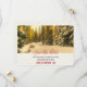 A festa de Natal salve o cartão de data com uma bela fotografia natural. Um caminho de inverno isolado com neve alta cobriu pinheiros que estavam na trilha. Um matiz ouro cria uma sensação mágica a esta foto.