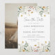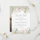 Este design apresenta uma borda de aquarela de flores silvestres em tons de dourado, vermelho, azul e verde. Perfeito para casamentos de primavera e verão.