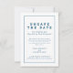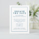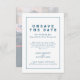 Mudança de plano cancelar data de simples texto azul escuro e branco cartão pequeno com uma foto recente do casal no verso. Deixe seus convidados saberem que seu casamento ou outro evento foi cancelado ou adiado devido a circunstâncias imprevistas. Outros itens correspondentes estão disponíveis. Projetado por www.mylittleedenweddings.com