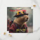"Capybara to the Rescue: Bombeiro Extraordinaire", uma heroica capybara entra em ação, colada numa jaqueta vermelha brilhante de bombeiro e num capacete amarelo. A sua coragem e dedicação mostram-se no seu rosto orgulhoso. Uma imagem de coragem, espírito comunitário e uma reviravolta carinhosa no herói do dia a dia!