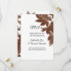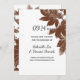 Defina o tom para os próximos núpcias de setembro, outubro ou novembro de outono em estilo com o Carimbo de Folha Marrom Casamento Salve o Anúncio de Data. Este elegante casamento autóctone personalizado mantém o anúncio da data com um selo de folha marrom design digitalmente criado de uma fotografia de natureza florestal das Folhas Coreanas de Maple. Inpo perfeito para a sua cerimônia de casamento e tema de recepção.