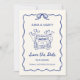 Anuncie o seu casamento com um toque divertido e na moda usando este cartão de Data da Salvação, ilustrado manualmente, projetado para capturar o entusiasmo do seu grande dia de uma forma única! Perfeito para casais que buscam um novo e moderno anúncio de casamento, este design caprichoso apresenta um clássico carro de casamento que toca balões em forma de coração, dando um tom divertido e leve. Enquadrada numa delicada borda ondulada, erguida com um arco encantador, esta carta traz o talo vintage à era moderna com a sua cor azul vibrante, criando um visual elegante e relaxado que é perfeito para qualquer tema de casamento. Impresso em papel de alta qualidade, cada cartão Salvar a Data é criado com ilustrações desenhadas à mão que acrescentam um sentimento autêntico, artístico, fazer-o tão especial quanto sua história de amor. A paleta de cores azuis lhe dá um apelo calmante e eterno que se adapta a qualquer estação, enquanto a design informal e funda o torna uma lembrança memorável que os convidados apreciarão. Este Salvar a Data é ideal para casais que querem colocar a palco para uma celebração de casamento cheia de amor, riso e alegria. Quer você esteja planejando uma cerimônia íntima ou um grande evento, este cartão combina o charme da inspiração vintage com uma reviravolta moderna, refletindo seu estilo único. Do doce, clássico carro aos balões em forma de coração, cada detalhe adiciona um toque pessoal que se destacará entre outras papelaria de casamento. Faça uma declaração e partilhe a data do seu casamento de uma forma que lhe pareça verdadeira com esta encantadora e desenhada à mão. Salve a data em azul.