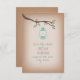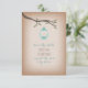 Um casamento salvou a data com a ilustração de uma lanterna azul clara pendurada num galho de árvore com folhas verdes. Personalize o texto. O fundo é inspirado no estoque de papelão. Procure por convites de casamento e outros itens de coordenação na Paperie de Jill.