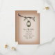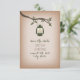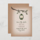 Um casamento salvou a data com a ilustração de uma lanterna verde acampada pendurada de um galho com folhas verdes. Personalize o texto. O fundo é inspirado no estoque de papelão. Procure por convites de casamento e outros itens de coordenação na Paperie de Jill.