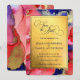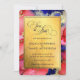 Cartão luxuoso vermelho e roxo de Save the Date com um acento de ouro rico em redemoinhos de cor líquida. No topo da arte está um modelo fácil de editar; ao qual os nomes dos noivos podem ser adicionados. Em seguida, substitua o texto do modelo pela data, hora e local do casamento. Arte abstrata original da artista internacional Pauline Benjes. Veja nossas coleções para mais designs lindos. Arte Abstrata de Casamento Regal Gold Save the Date.