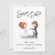 Anúncio de casamento save the date ilustrado fofo e moderno com uma ilustração de uma noiva e um noivo dançando. Ilustrado e projetado por Patricia Alvarez.