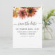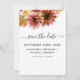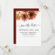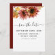 Convite de casamento de primavera aquarela rústico ao ar livre com girassol amarelo e borgonha - inclui tipografia de roteiro bonita e elegante com folhas de outono ou outono botânicas modernas e folhagens para a celebração do dia do casamento especial.