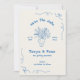 Anuncie seu dia com este vaso de flores brancas desenhado à mão Salve a data, com rabiscos brincalhões, rabiscos de arco e um encantador roteiro de escrita manual. Acentuado em tons azuis suaves, esta design peculiar e criativa é perfeita para casais planejando uma celebração divertida e iluminada. Uma escolha única para casamentos casuais, histórias de amor modernas e vibrações alegres.