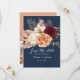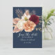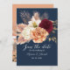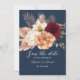 Anuncie seu dia especial com este elegante casamento de burgundy e marinho azul. Apresentando rosas de aquarela em burgundy, pêssego e marfim com grama-pampas e verde, o design é acentuado por um rico fundo de marinho para um aspecto eterno e romântico. Perfeito para queda ou casamentos no inverno. Personalize com seus nomes e data de casamento para criar uma primeira impressão duradoura. Convites iguais, cartões RSVP, cartões de detalhes, menus e sinais de boas-vindas estão disponíveis em nossa coleção para uma suíte de casamento completa.