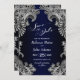 Informe seus amigos e entes queridos de sua data de casamento para que eles possam fazer arranjos para comparecer a este elegante casamento azul de renda branca, salve o cartão de data.