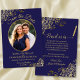 Estas belas cartas são uma forma excelente de deixar seus amigos e família saberem salvar a data do seu próximo casamento. Eles apresentam um design marinho azul e dourado com sua foto em um quadro em forma oval rodeado por ouro faux foil lace frills e rico script lettering com seus nomes, data do casamento e local. O verso tem um gráfico bonito de "lápis nós in" com espaço para uma nota que pode incluir um site onde seus convidados podem obter mais informações.