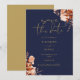 Este convite de save the date floral rústico azul marinho e dourado elegante pode ser personalizado com suas informações em tipografia sofisticada. Criado por Thisisnotme©