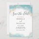 Reserve A Data Casamento Azul Moderno Elegante Aquarela Dourado