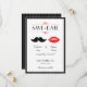 Lábios vermelhos voluptuosos e um bigode elegante são os principais destaques deste convite de casamento sofisticado e moderno.