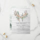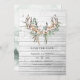 Convite de casamento boêmio rústico em marrom empoeirado com bolas de seda de algodão e folhas de eucalipto boho com penas e chifres.