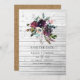 Vinho tinto burgundy e floral em aquarela roxo escuro rústico boho boêmio convite de casamento com detalhes em rosa suave personalizável para os detalhes do seu evento. Ideal para qualquer tema ou casamento no jardim. A foto no verso é opcional. Se preferir removê-la, role até o final de "Personalize este modelo" e clique em "Editar usando a Ferramenta de Design". Na Ferramenta de Design você pode editar, dimensionar, excluir ou mover qualquer texto ou elemento de design que desejar.