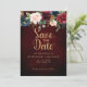 Lindos convites de casamento boho com flores salvos apresentam gráficos florais pintados à mão em tons ricos de azul naval / borgonha e rosa bege / pêssego e fonte de letra estilo caligrafia charmosa. Por favor, entre em contato comigo para qualquer ajuda na personalização ou se você precisar de qualquer outro produto com este design.