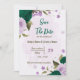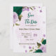 Um belo casamento romântico salve a data do convite com flores esmeraldas verdes e roxas e algumas folhas. PARA MAIS PRODUTOS CORRESPONDENTES, clique na coleção acima ou entre em contato comigo
