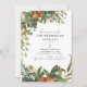 Cartão de aviso de casamento floral e folhagem de aquarela de laranja cítrica. Belas aquarelas florais impressas à mão e texto de roteiro moderno.