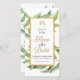 Este elegante e moderno estilo Cheers to Love Save the Date Wedding design apresenta dois vidro de champanhe num brinde ao amor. Há um bonito quadro de ouro com sotaques botânicos verdes que rodeiam o texto na frente deste dourado e verde Salvar a Data. Personalize este simples casamento Salve o cartão de data com seus nomes e a data e local do evento.