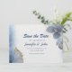 Anuncie seu dia de casamento em estilo com este elegante casamento botânico de mármore azul, salve o cartão de data. Você pode adicionar facilmente o(s) seu(s) nome(s) personalizado(s) e os detalhes de seus anúncios de casamento clicando no botão "personalizar este modelo". Avise seus convidados sobre seu grande dia de uma forma linda.