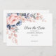 Casamento floral rosa elegante salve o cartão de data que você pode personalizar facilmente com seus detalhes clicando no botão "Personalizar". Apresenta a tipografia popular moderna com texto de script a preto sobre fundo branco DICA: produtos correspondentes disponíveis abaixo para sua conveniência