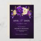 Casamento elegante do tema ouro roxo, salva o cartão com buquê elegante de roxo real, índio, ouro, flores rosa amarelas e folhas de eucalipto. Entre em contato comigo para obter ajuda sobre a personalização ou se você precisar de outro produto com este design.