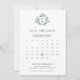 Elegante Emerald Green Greenery Vintage, calendário de fotos de casamento botânico salvam o cartão de data com flores e folhas elegantes de cor verde-d'água. Entre em contato comigo para obter ajuda sobre a personalização ou se você precisar de outro produto com este design.
