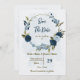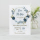 Um belo casamento romântico salve a data do convite com flores azuis-claras e azuis-marinhos e algumas folhas. PARA MAIS PRODUTOS CORRESPONDENTES, clique na coleção acima ou entre em contato comigo