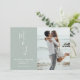 Anuncie seu dia de casamento com sua foto incrível sobre um fundo de sábio macio junto com suas iniciais em um guião caprichoso de caligrafia moderna na frente da carta, e folhas botânicas suaves na parte de trás da carta. Ideal Salvar a Data para casamentos, noivados, aniversários e outros eventos especiais.