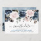 Azul poeirento, maduro e floral botânico cor-de-rosa pincelado salve o cartão de data apresenta um buquê espantoso de flores azuis, ardidas e rosa com folhas botânicas verdes e esbranquiçadas e folhas de eucalipto. Este design de cor pastel macio será perfeito para qualquer tema de casamento, especialmente primavera / casamentos de verão. Por favor, encontre mais designs e variações na minha loja de "blisswedingpaperie". E fique à vontade para me contactar para mais personalizações ou itens correspondentes. #dustyblue #dustybluecasamento #midsummerWed#calliografia #blush