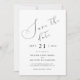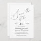 O casamento branco e preto moderno elegante salve a data. Casamento de designer sofisticado e maravilhoso salve a data com texto preto em branco com destaque para salvar o cabeçalho de tipografia de script de data. Personalize com o texto de detalhes da data de salvamento. O dorso é branco sólido. Todos os textos, fontes e cores são personalizáveis e podem ser adicionados ou excluídos conforme você escolher. Convidamo-lo a visitar a nossa loja, Austen & Grace, para ver a suíte de casamento de cheios, produtos correspondentes e muito mais. Entre em contato conosco se precisar de assistência.