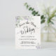 Este belo cartão de encontro vai avisar seus amigos e família do seu próximo casamento. Apresenta um belo design de aquarela pintado manualmente com caligrafia elegante com script, e prigs de folhas de eucalipto e flores lavandas em um fundo branco marmoreado.